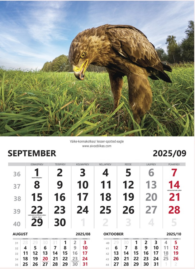 Veel järgi viimased eksemplarid aasta 2026 kalendreid. Formaat A3. Poole kalendrist moodustab foto, teise poole 3 kuud, millest 1 on suurem ja kaks väiksemad. Kuude fotod näha siit näidiselt. Fotod kõik tehtud Eestis. Hind 12 eur ning soovi korral võttta ühendust meiliga aivo.oblikas@bestmark.ee