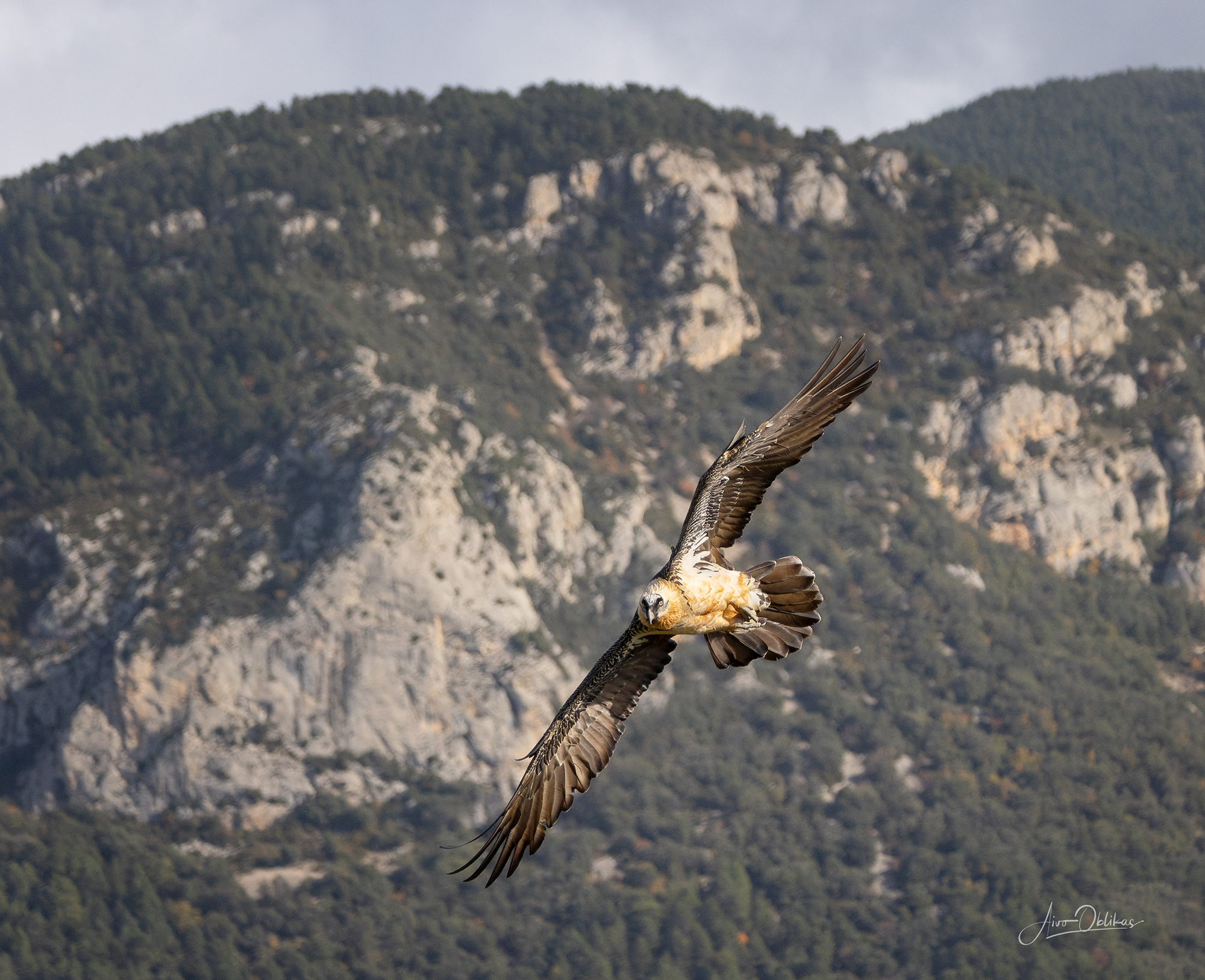 The bearded vulture is a true giant of the mountains, with a wingspan of up to 285 cm, a body length of up to 125 cm, and weighing 8 kg. It is one of the largest birds of prey in the world. Belonging to the vulture family, it differs significantly from them. Unlike all other vultures, it does not have a bare neck. It also has a much longer tail, which is clearly visible in the upper image.