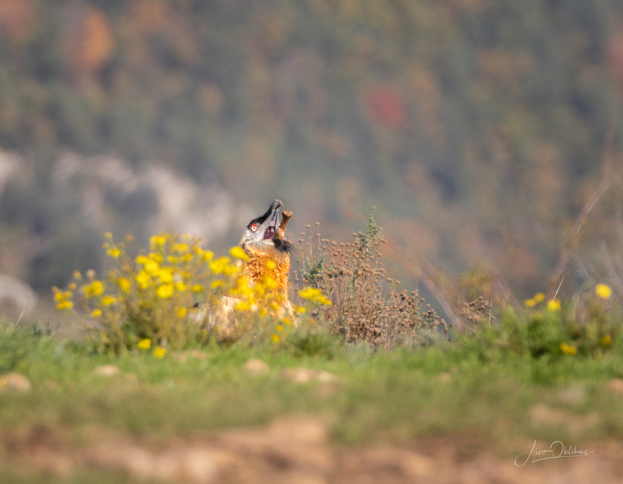 The bearded vulture’s feeding habits are particularly unique. Bones make up 85-90% of its diet. It is capable of swallowing a bone the size of a lamb’s femur in one go. If it doesn’t fit, it can bite it in half. For larger bones, it uses a method where it flies high into the sky and drops the bone onto a rock. Once the bone breaks, it can swallow the smaller pieces. If it doesn’t break, the vulture repeats the process until the bone is sufficiently shattered into pieces.